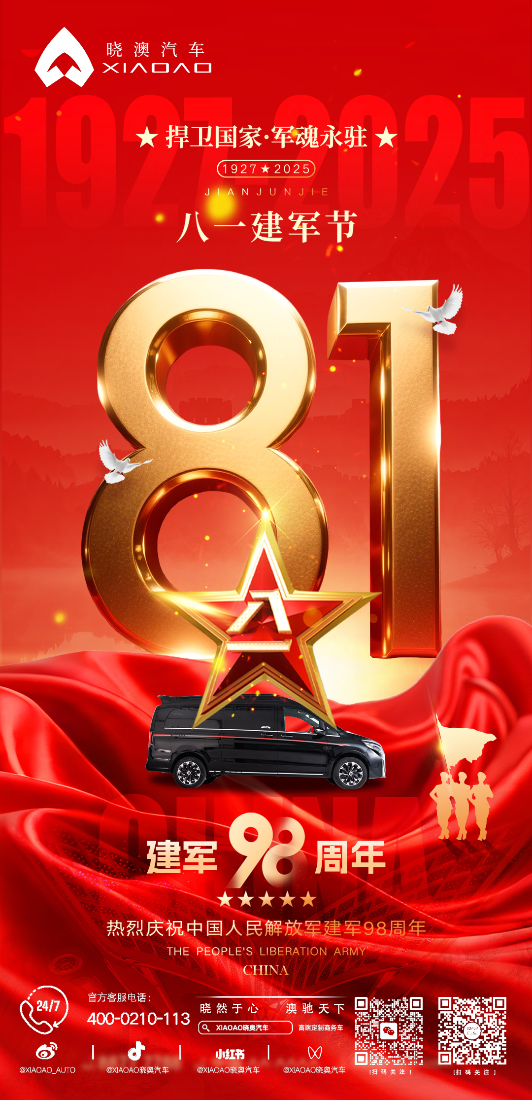他们用热血捍卫山河,我们用品质守护出行。八一建军节,晓澳汽车向中国军人致以最崇高的敬意,也期待成为你可靠的出行伙伴 。