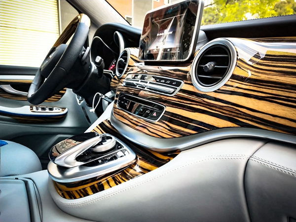 黑黄檀珍稀木材包覆仪表台,方向盘更有质感,V级悬浮屏视角,方便实现车内功能,多功能中控台调节温度与灯光,总能匹配您的喜好。座椅与门内侧真皮透气处理,鸵鸟皮镶嵌,雍容华贵配色却清爽宜人。两个驾驶座椅中间是一体式扶手内置自动车载冰箱。